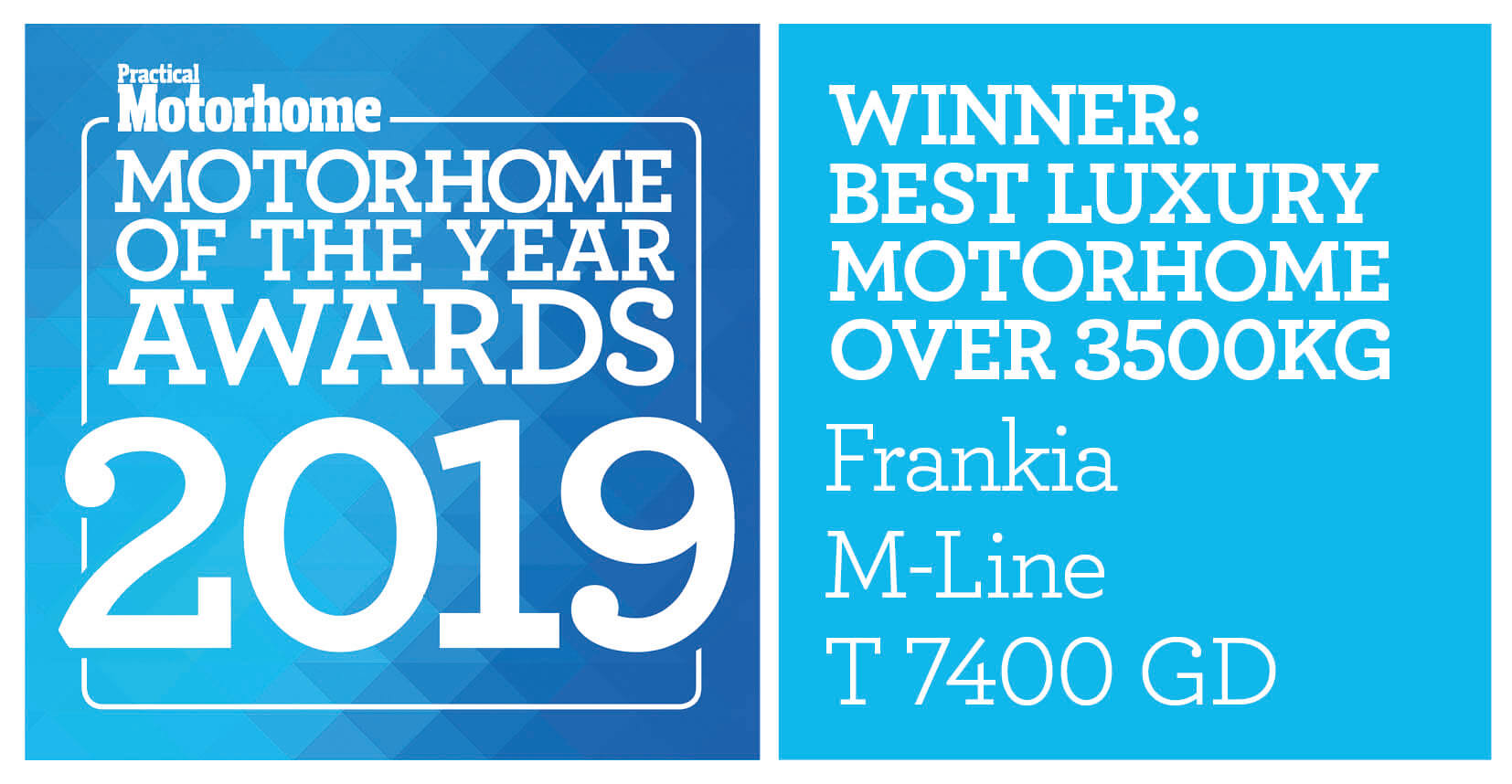 Den Award für die Kategorie "Best Luxury Motorhome over 3.500 kg" hat diesmal unser FRANKIA T 7400 GD erhalten. Das Wohnmobil aus der M-Line Reihe ist der einzige Teilintegrierte 5-Tonner auf Basis des neuen Mercedes-Benz Sprinters und damit ein echtes Modellhighlight 2019.