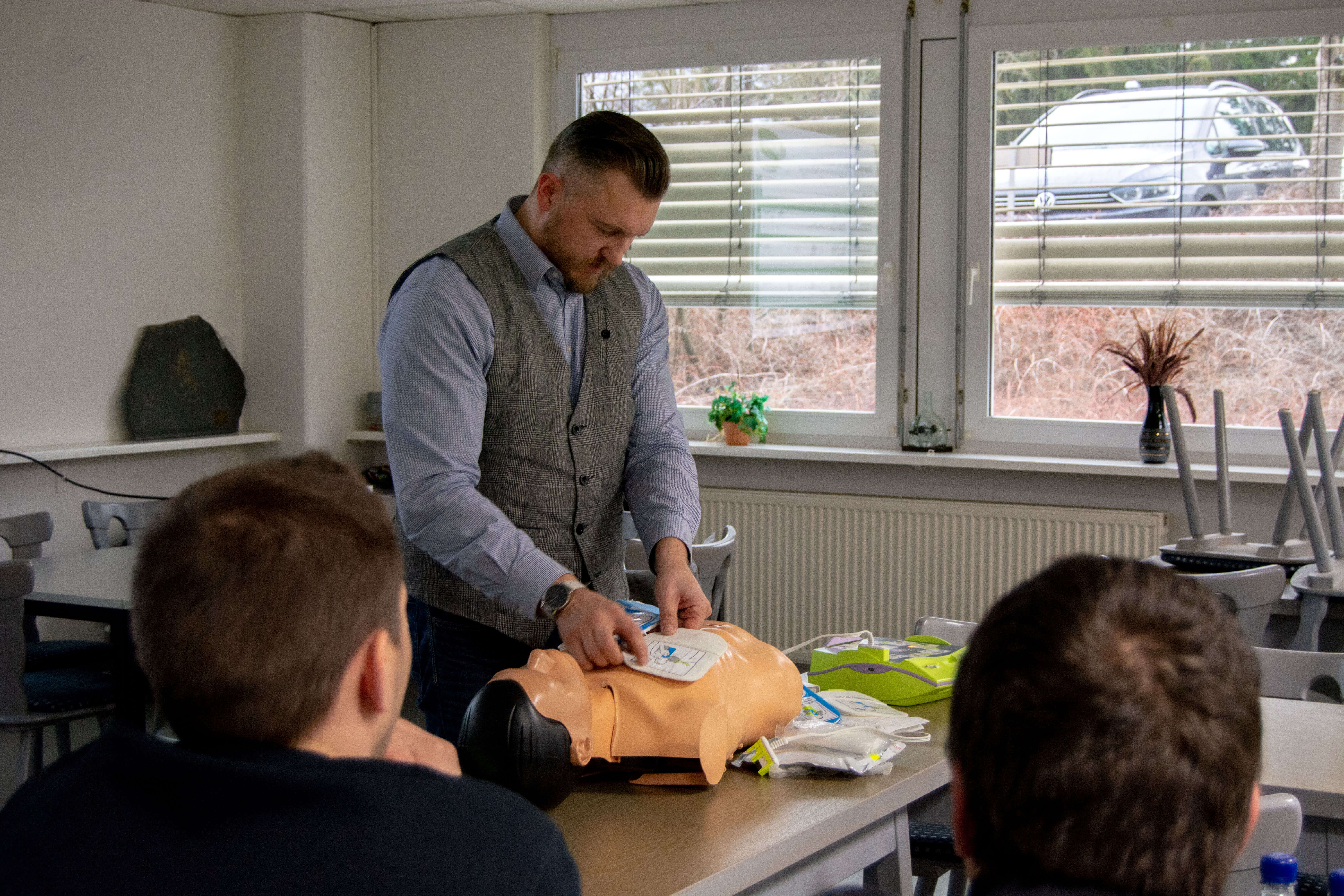 Die Ersthelfer der Firma erhalten im 2-Jahres-Turnus eine Fortbildung in Sachen Erste Hilfe und dazu zählt künftig auch die Handhabung des Defibrillators.