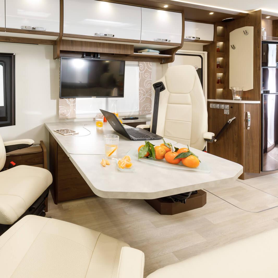 - I 680 SG (Lots of space in the 1.24 m high rear storage compartment, Coffee Corner is part of the standard equipment package, huge amount of storage space with a length under seven metres)